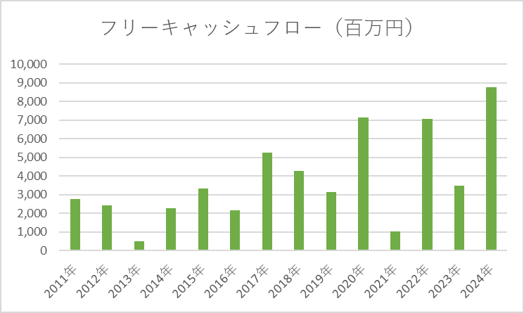 フリーキャッシュフローは年度によって大きく変動しますが、これは通信網整備や設備投資のタイミングによるものです。長期的には安定した収益回収が可能で、成長投資の一環として捉えれば懸念は小さいです。
