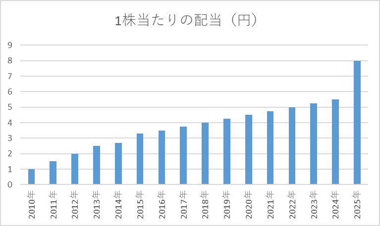 配当の伸び幅は年度によって変動しますが、利益の範囲内で無理なく増配を行っていることから、財務の健全性と株主還元のバランスが取れた企業であることがうかがえます。
